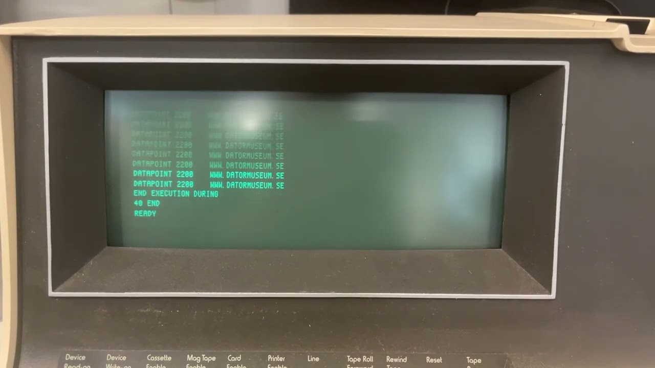 The Datapoint 2200 was a product sold around 1971, and “famous” for using a set of TTL chips that were essentially a precursor to the Intel 8008, combining a crisp 80x8 CRT, and a decent full keyboard. It booted from a tape, a piece of software called “CTOS” (Cassette Operating System). I’m not sure about RAM specs.